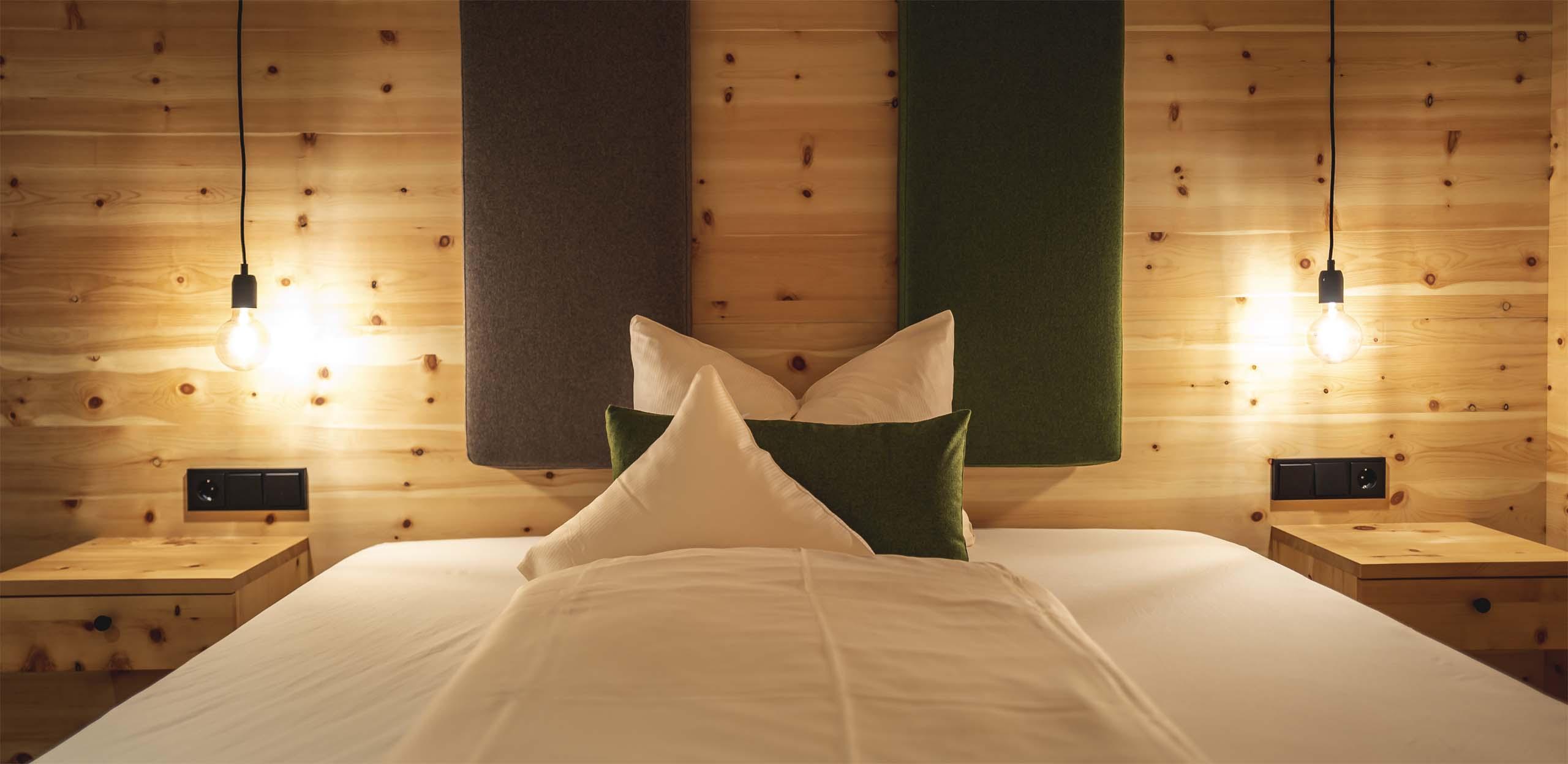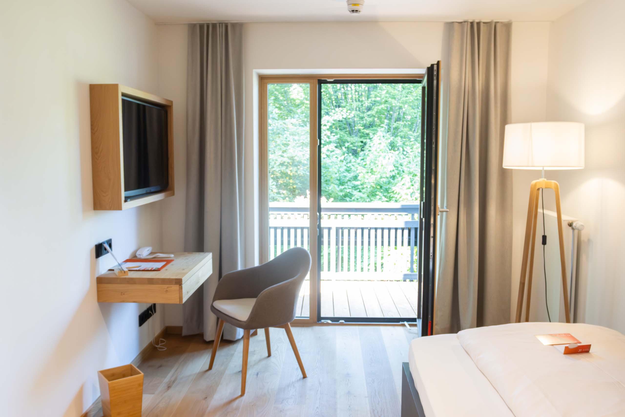 Hier finden Sie eine Rückzugsort inmitten der Natur mit durchdachten Raumlösungen und einer hochwertigen Ausstattung. Ein gemütliches Bett, ein Schrank für all Ihr Gepäck und ein praktischer Schreibtisch bieten Alleinreisenden mehr als genug Platz. Selbstverständlich erwartet Sie auch hier die beste Aussicht auf die Alpen.